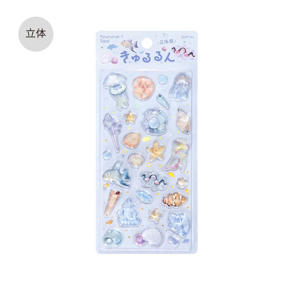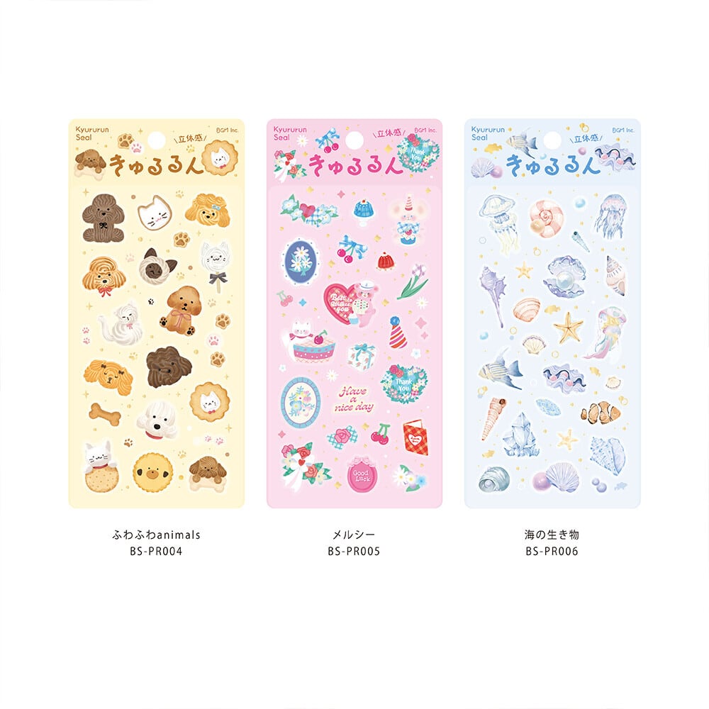 【3点セット】きゅるるんシール メルシー ふわふわanimals 海の生き物